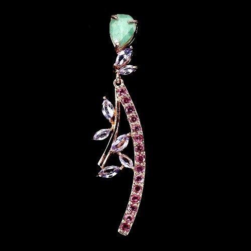 Ganz wundervoll designter Anhänger mit 1 Smaragd, 7 Tansaniten und 15 Rhodoliten gefasst in 925 Sterlingsilber 585 rosévergoldet
