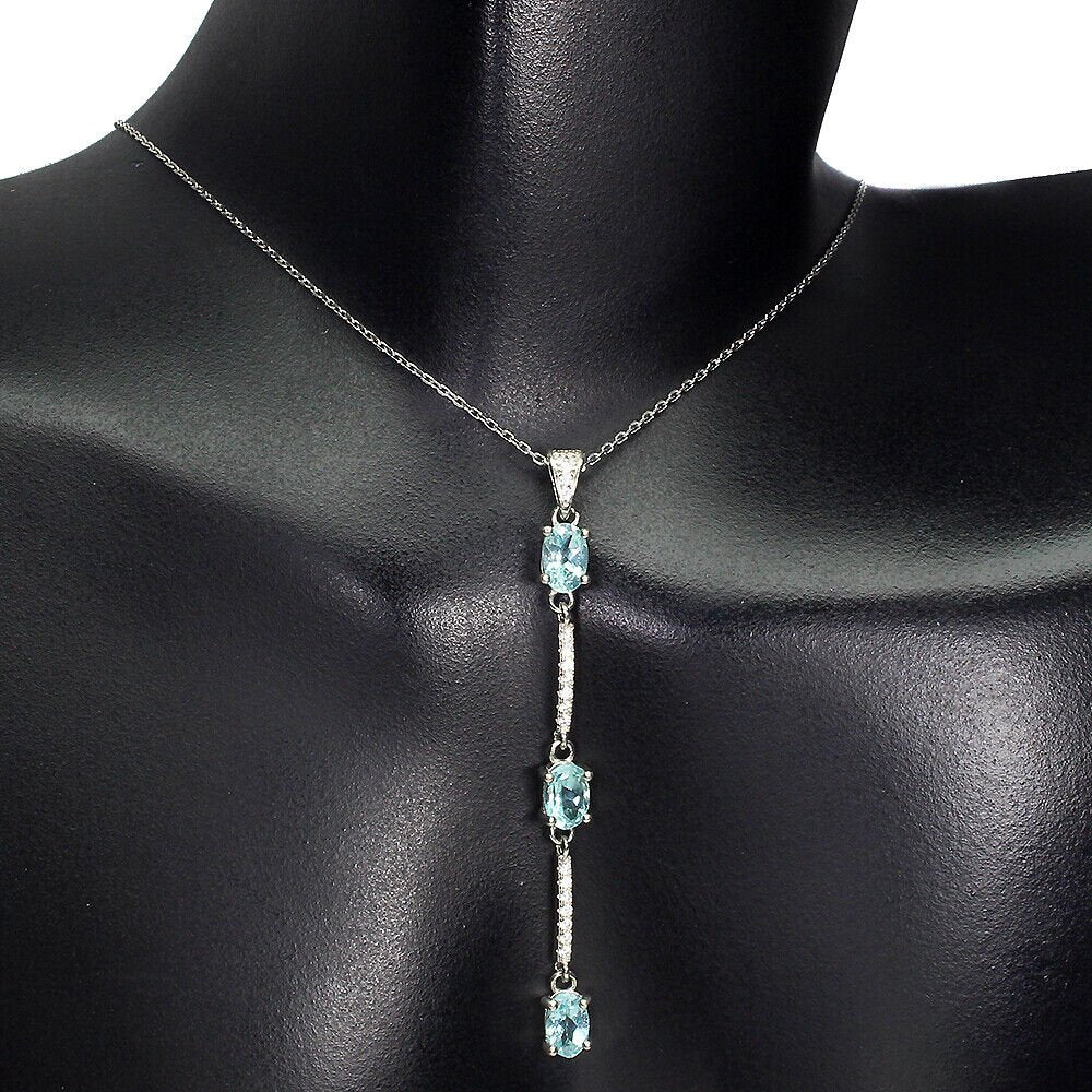 Sehr schöne Halskette mit einem Anhänger mit 3 Apatiten & weißen Cubic Zirconia gefasst in 925 Sterlingsilber 585 weißvergoldet
