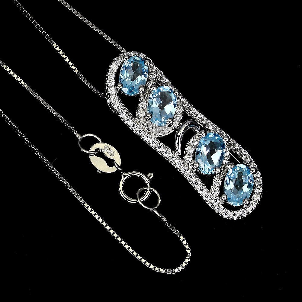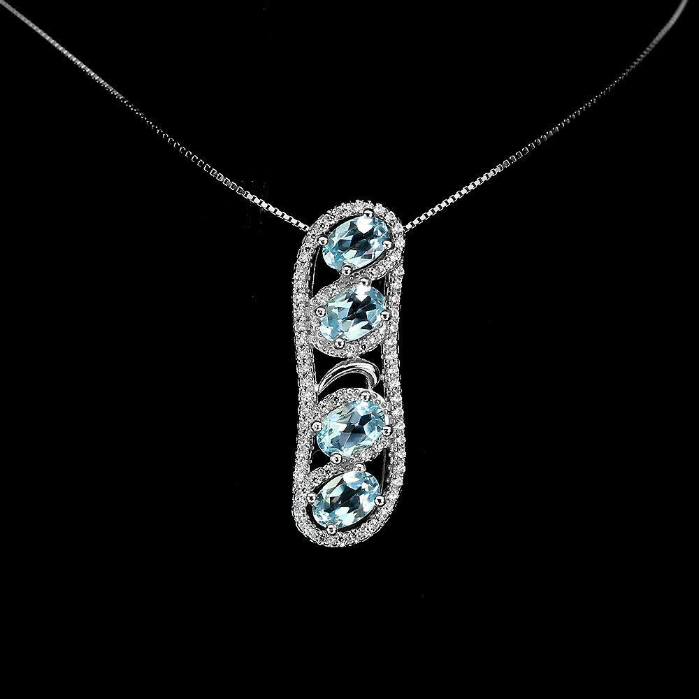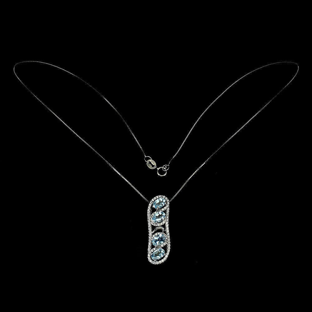 Halskette mit Anhänger mit 4 Blautopasen in der Farbe Sky Blue & weißen Cubic Zirconia gefasst in 925 Sterlingsilber 585 weißvergoldet
