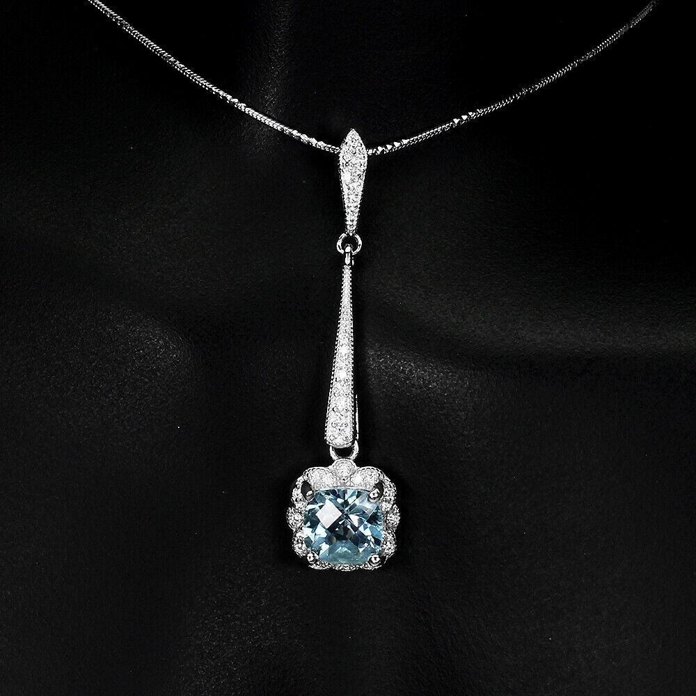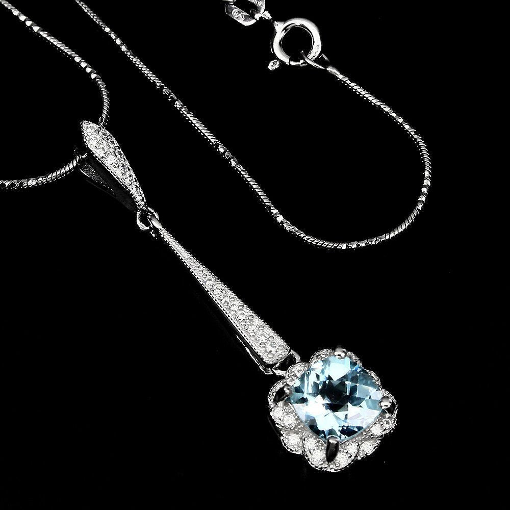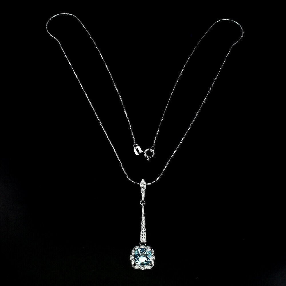 Sehr schöne Halskette mit Anhänger mit einem Blautopas in der Farbe Sky Blue & weißen Cubic Zirconia gefasst in 925 Sterlingsilber 585 weißvergoldet
