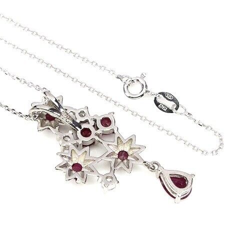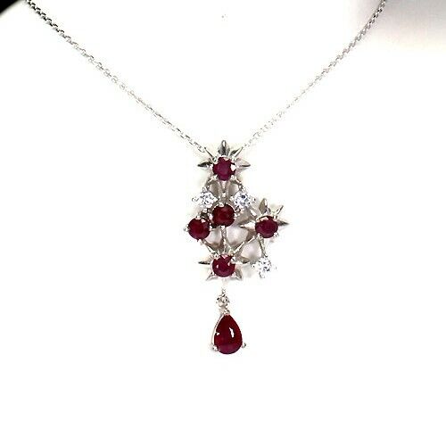 Halskette mit Anhänger mit 6 Rubinen & weißen Cubic Zirconia gefasst in 925 Sterlingsilber 585 weißvergoldet