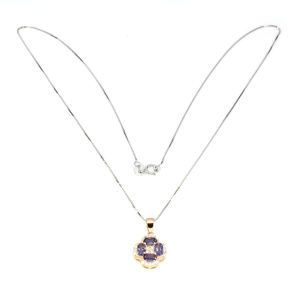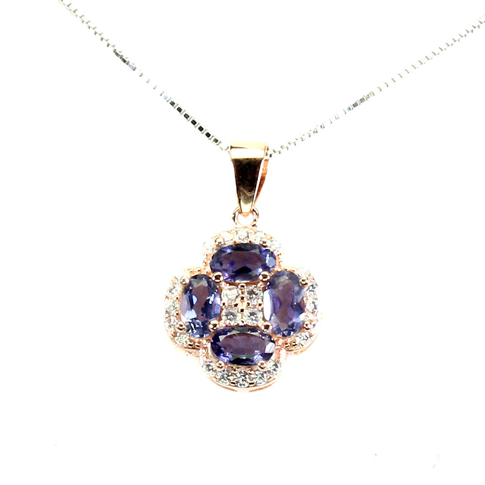 Halskette mit Anhänger mit Iolithen & weißen Cubic Zirconia gefasst in 925 Sterlingsilber 14 Karat Weißgold und Roségold vergoldet