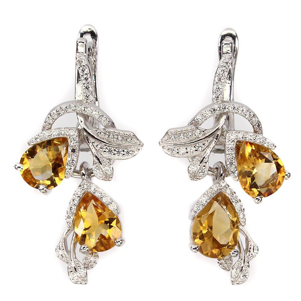 Ohrringe mit insgesamt 4 Citrinen & weißen Cubic Zirconia gefasst in 925 Sterlingsilber 585 weißvergoldet