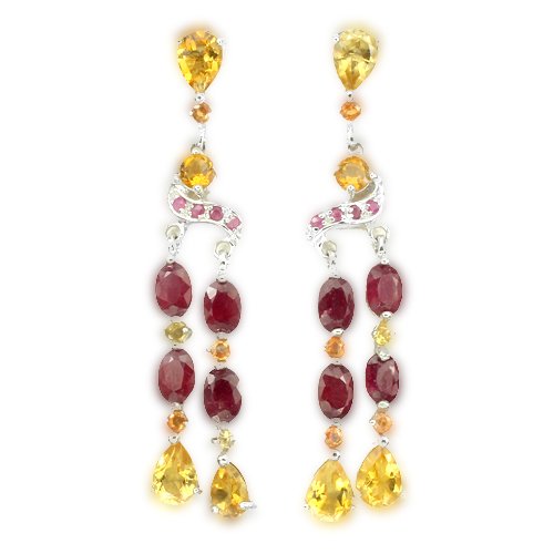 Glamouröse große Ohrringe mit 18 Citrinen und 16 Rubinen gefasst in 925 Sterlingsilber 585 weißvergoldet