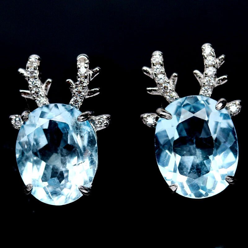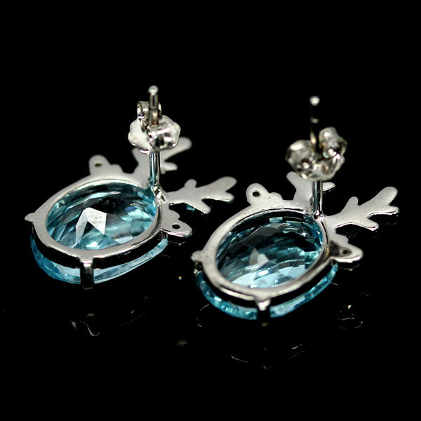 Süße Ohrstecker mit insgesamt 2 Blautopasen in der Farbe Sky Blue & weißen Cubic Zirconia gefasst in 925 Sterlingsilber 585 weißvergoldet