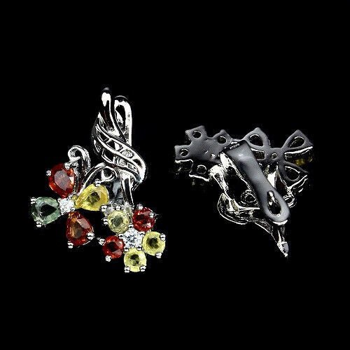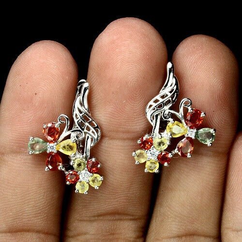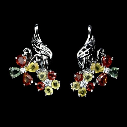 Ohrringe mit insgesamt 18 Saphiren in gelb rot grün & weißen Cubic Zirconia gefasst in 925 Sterlingsilber 585 weißvergoldet