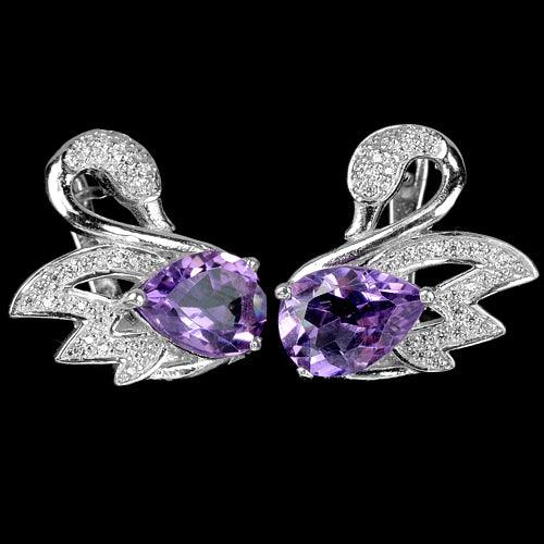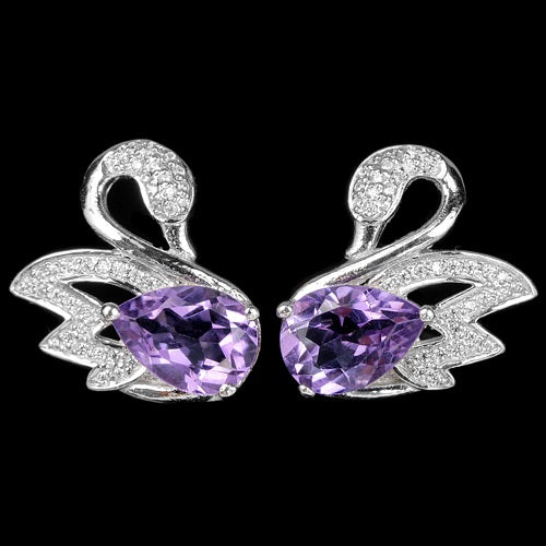 Ohrringe in Schwan-Form mit Amethyst & weißen Zirkonia gefasst in 925 Sterlingsilber 14 Karat Weißgold vergoldet
