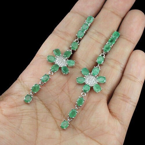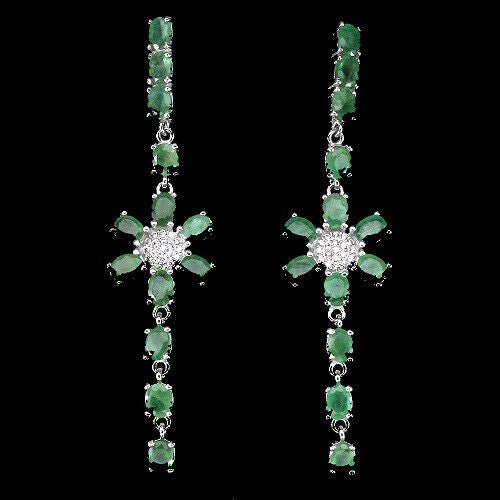 Stilvolle Ohrringe mit insgesamt 26 Smaragden & weißen Cubic Zirconia gefasst in 925 Sterlingsilber 585 weißvergoldet