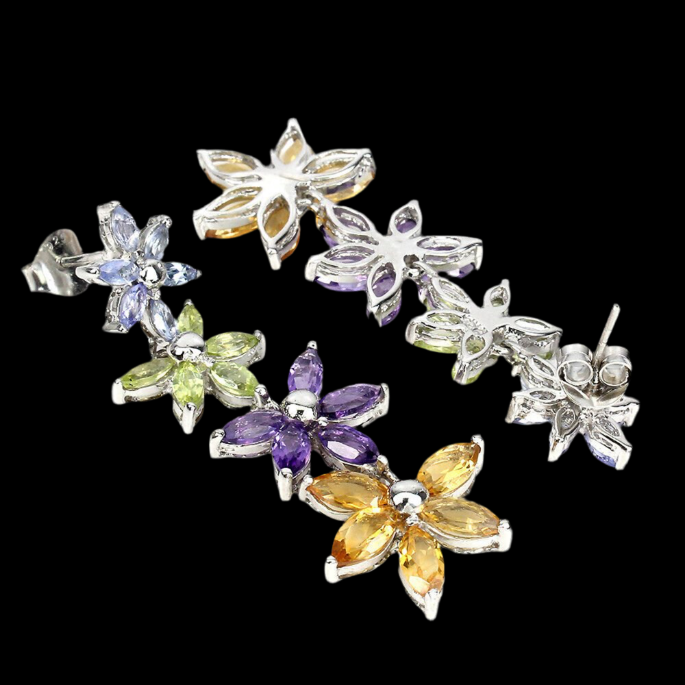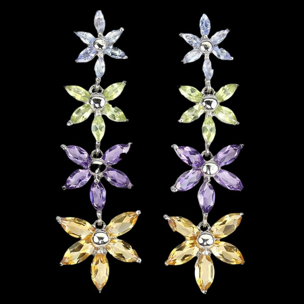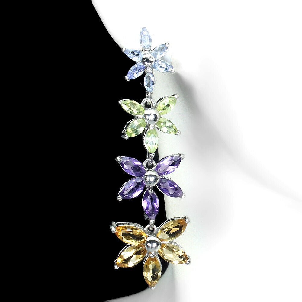 Wundervolle Blüten-Ohrringe mit insgesamt 12 Tansaniten 10 Amethysten, 10 Citrinen und 10 Peridoten gefasst in 925 Sterlingsilber 585 weißvergoldet