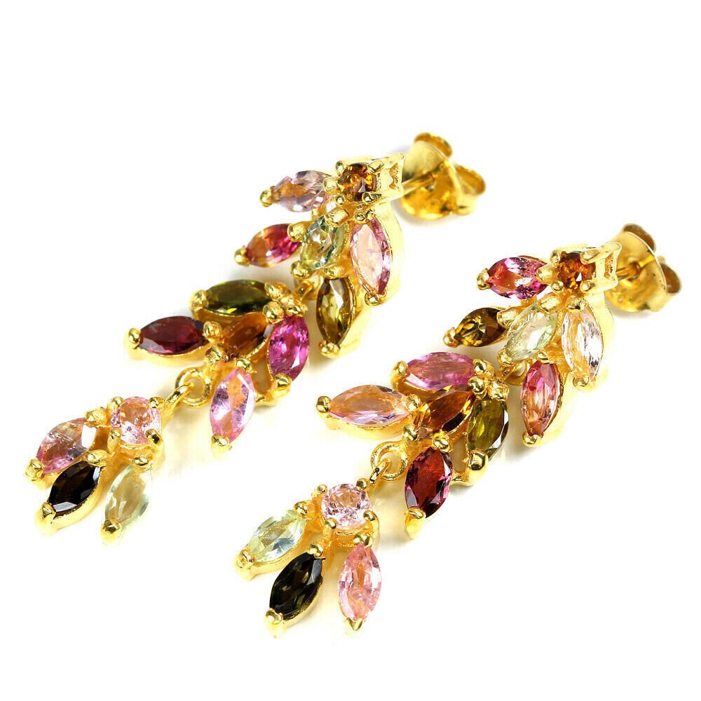 Wundervolle Ohrringe mit insgesamt 30 Turmalinen in verschiedenen Farben gefasst in 925 Sterlingsilber 585 gelbvergoldet