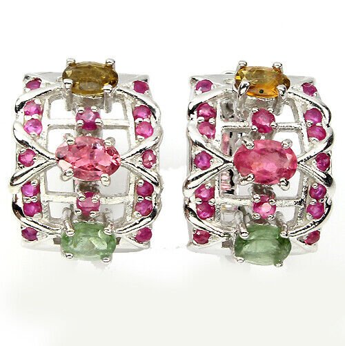 Ohrringe mit insgesamt 6 Turmalinen und 32 Rubinen gefasst in 925 Sterlingsilber 585 weißvergoldet