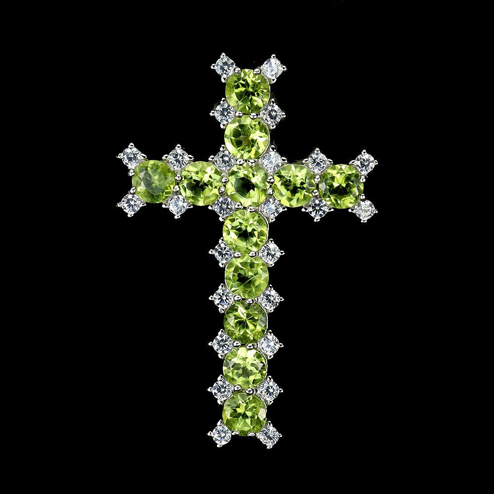 Kreuz-Anhänger mit Peridoten gefasst in 925 Sterlingsilber 14 Karat Weißgold vergoldet