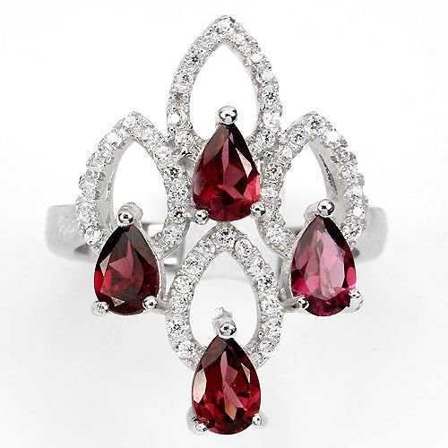 Ring mit 4 Rhodoliten & weißen Cubic Zirconia gefasst in 925 Sterlingsilber 585 weißvergoldet
