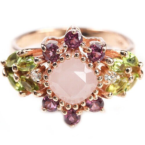 Rosenquarz Rhodolit Peridot Ring Gr. 56