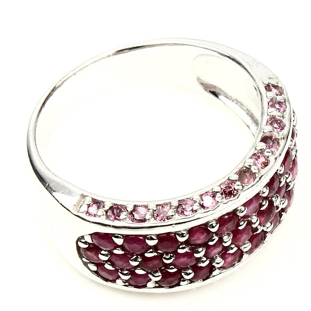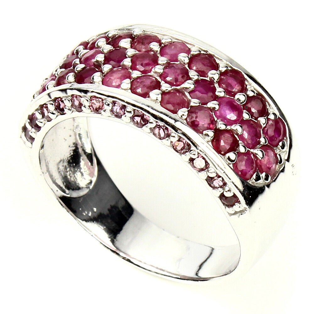 Zeitloser Ring mit 31 Rubinen und 26 Rhodoliten (an der Seite) gefasst in 925 Sterlingsilber 585 weißvergoldet