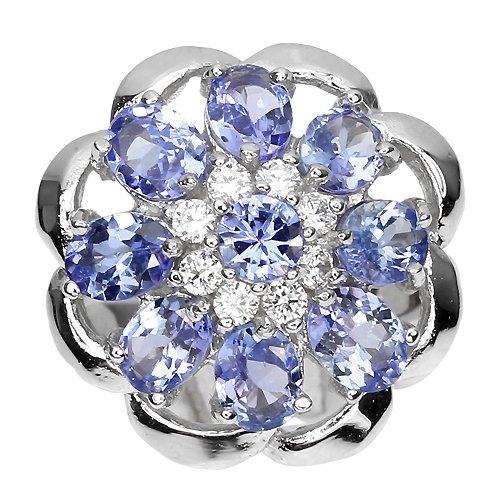 Sehr dekorativer Ring mit 9 Tansaniten & weißen Cubic Zirconia gefasst in 925 Sterlingsilber 585 weißvergoldet