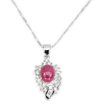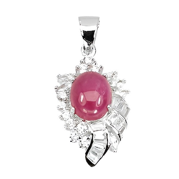 Anhänger mit einem großen Rubin & weißen Zirkonia gefasst in 925 Sterlingsilber 14 Karat Weißgold vergoldet
