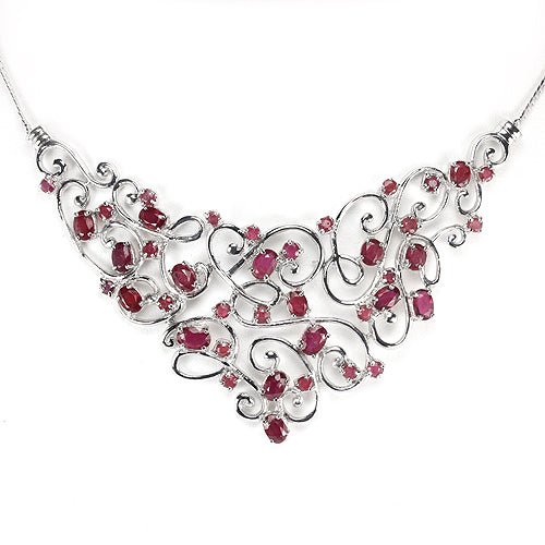 Collier mit Rubinen gefasst in 925 Sterlingsilber 14 Karat Weißgold vergoldet