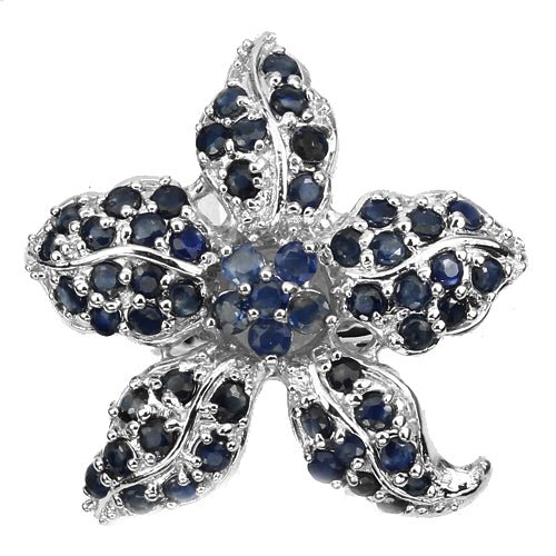 Toller Blüten-Ring mit 56 blauen Saphiren gefasst in 925 Sterlingsilber 14 Karat Weißgold vergoldet
