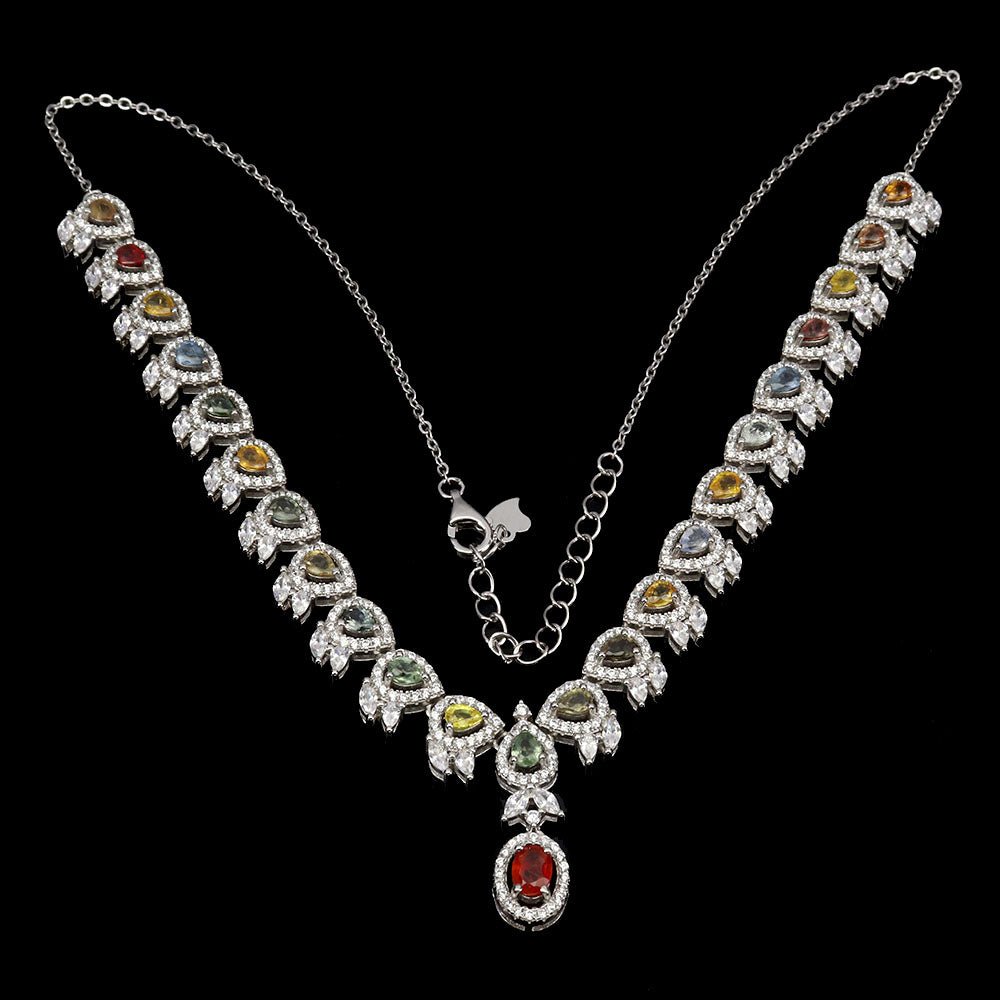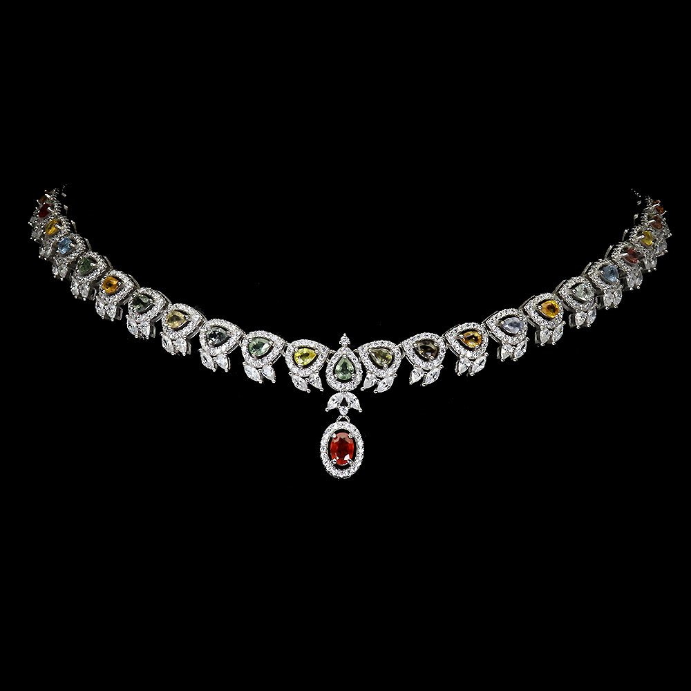 Collier mit Saphiren in verschiedenen Farben & weißen Zirkonia gefasst in 925 Sterlingsilber 14 Karat Weißgold vergoldet