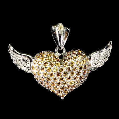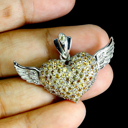Herz-Anhänger mit gelben Saphiren gefasst in 925 Sterlingsilber 14 Karat Weißgold vergoldet