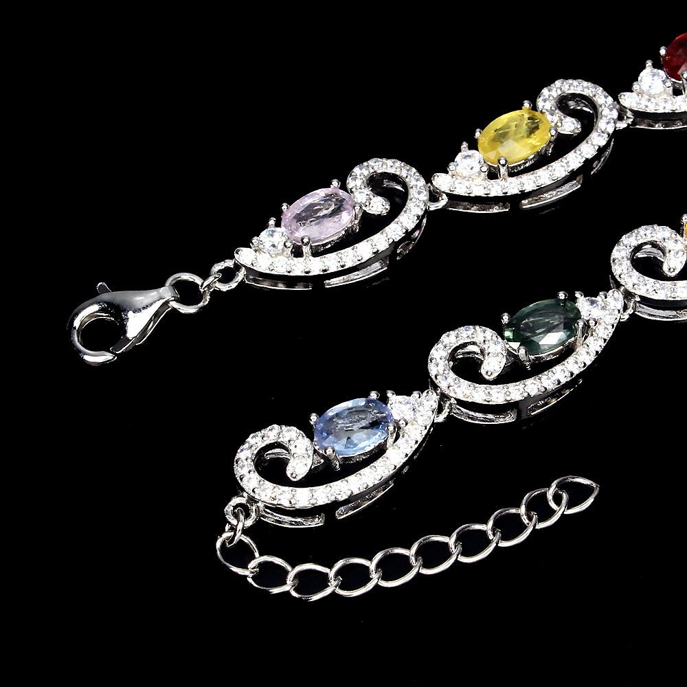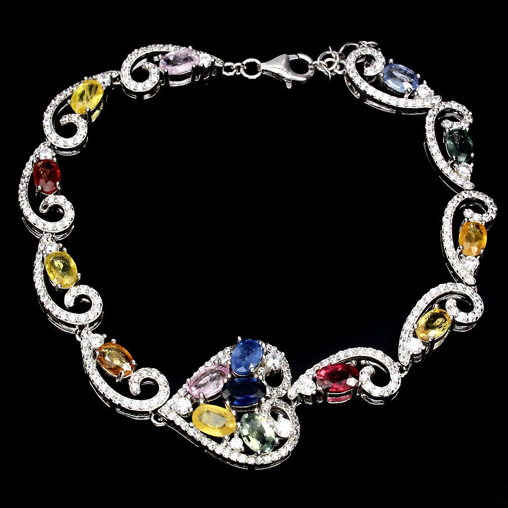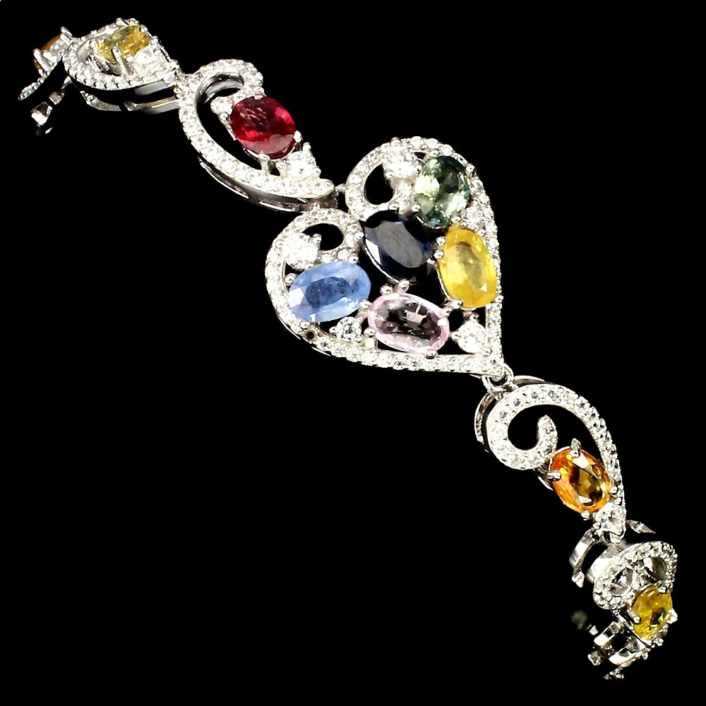 Herz-Armband mit Saphiren in verschiedenen Farben & weißen Zirkonia gefasst in 925 Sterlingsilber 14 Karat Weißgold vergoldet