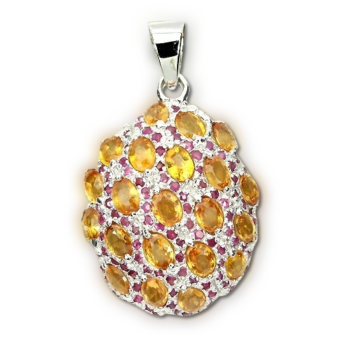 Anhänger mit gelben Saphiren und Rubinen gefasst in 925 Sterlingsilber 14 Karat Weißgold vergoldet