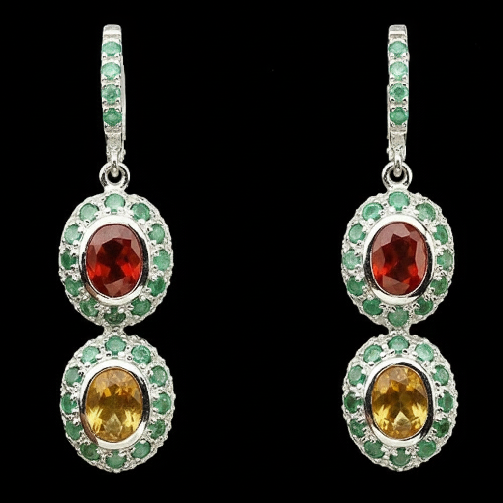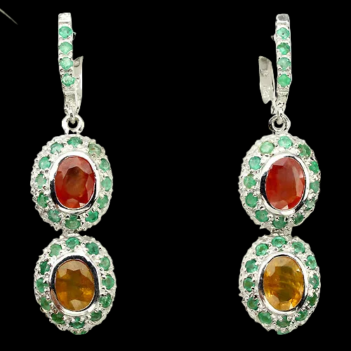 Ohrringe mit bezaubernden Bangkaja-Saphiren sowie Smaragden gefasst in 925 Sterlingsilber 14 Karat Weißgold vergoldet