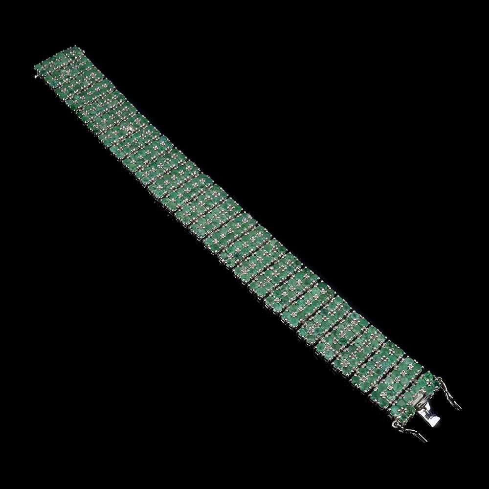 Luxuriöses Armband mit über 300 Smaragden gefasst in 925 Sterlingsilber 14 Karat Weißgold vergoldet