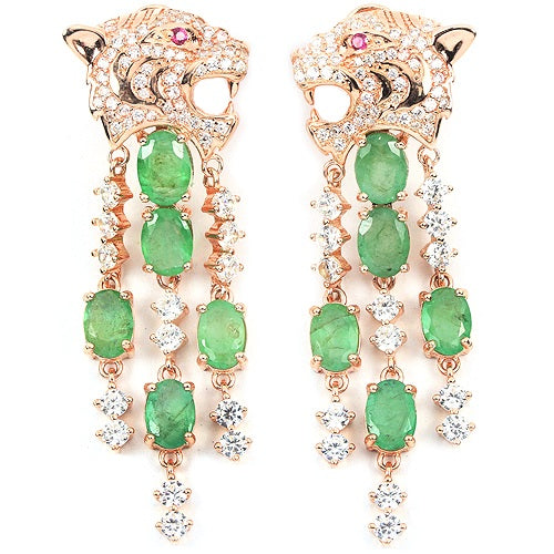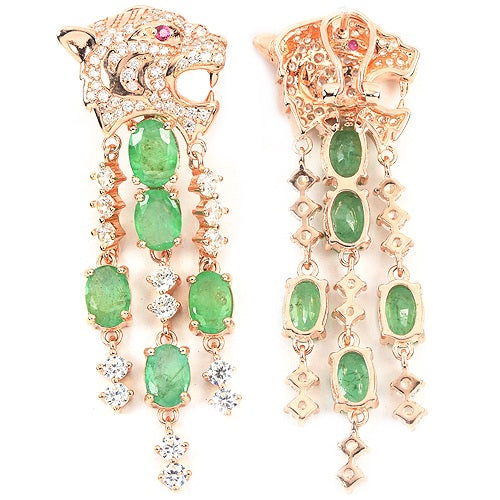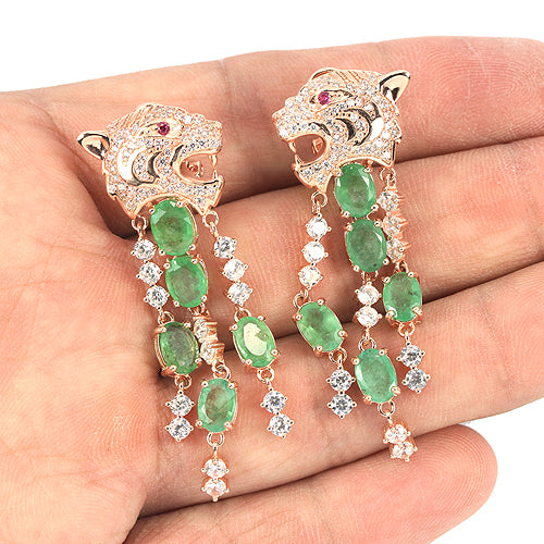 Raubkatzen-Ohrringe mit Smaragden & weißen Zirkonia gefasst in 925 Sterlingsilber 14 Karat Roségold vergoldet
