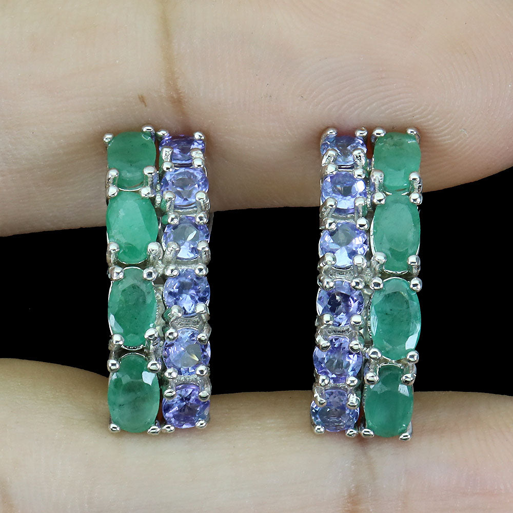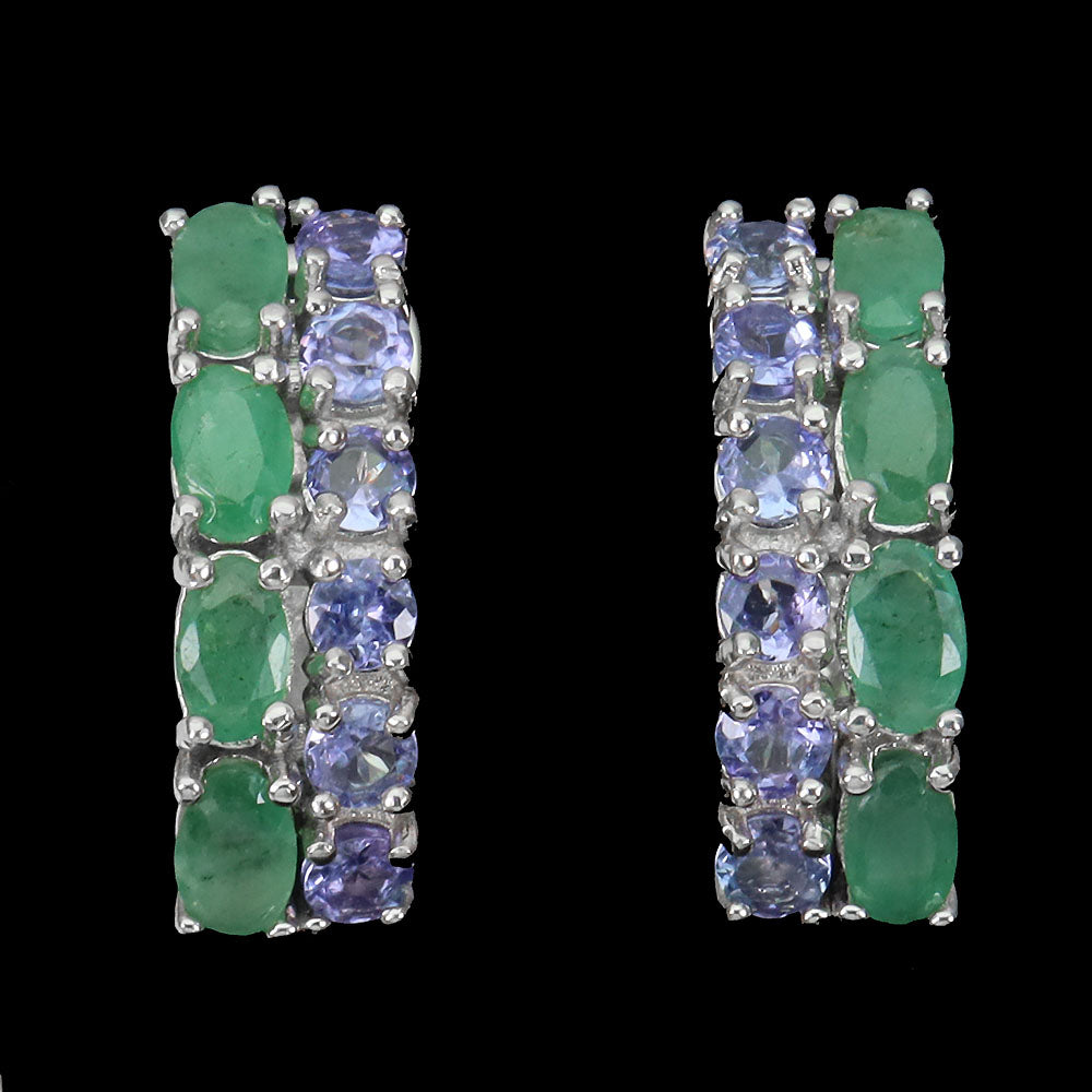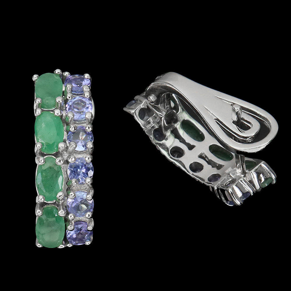 Ohrringe mit Smaragden und Tansaniten gefasst in 925 Sterlingsilber 14 Karat Weißgold vergoldet