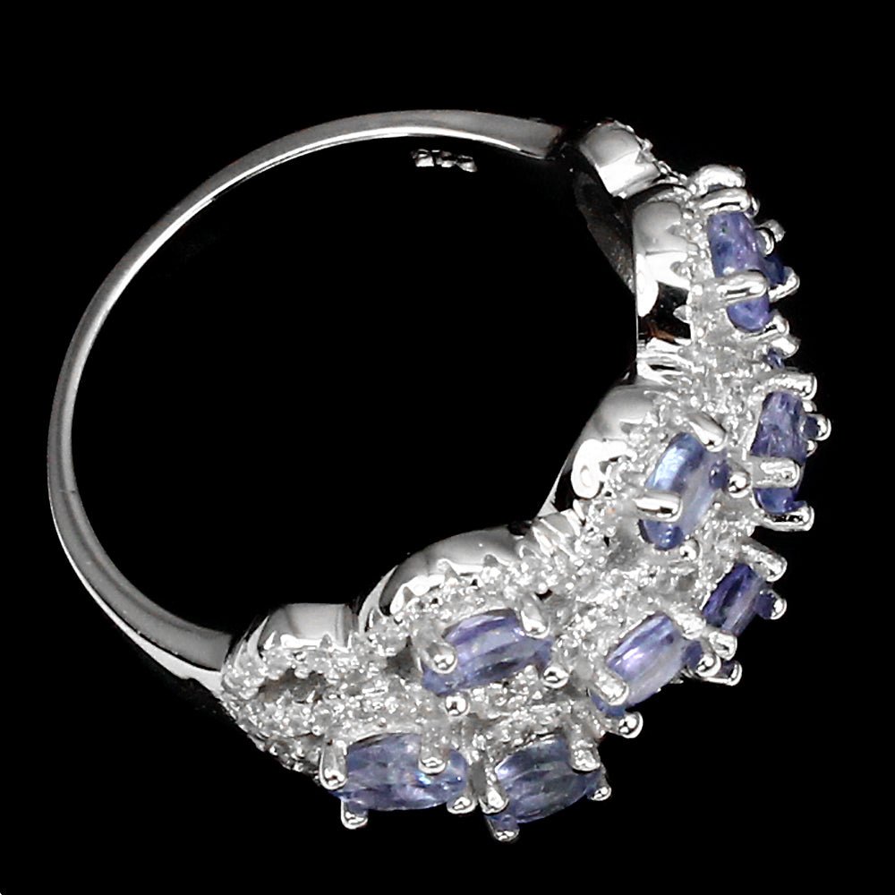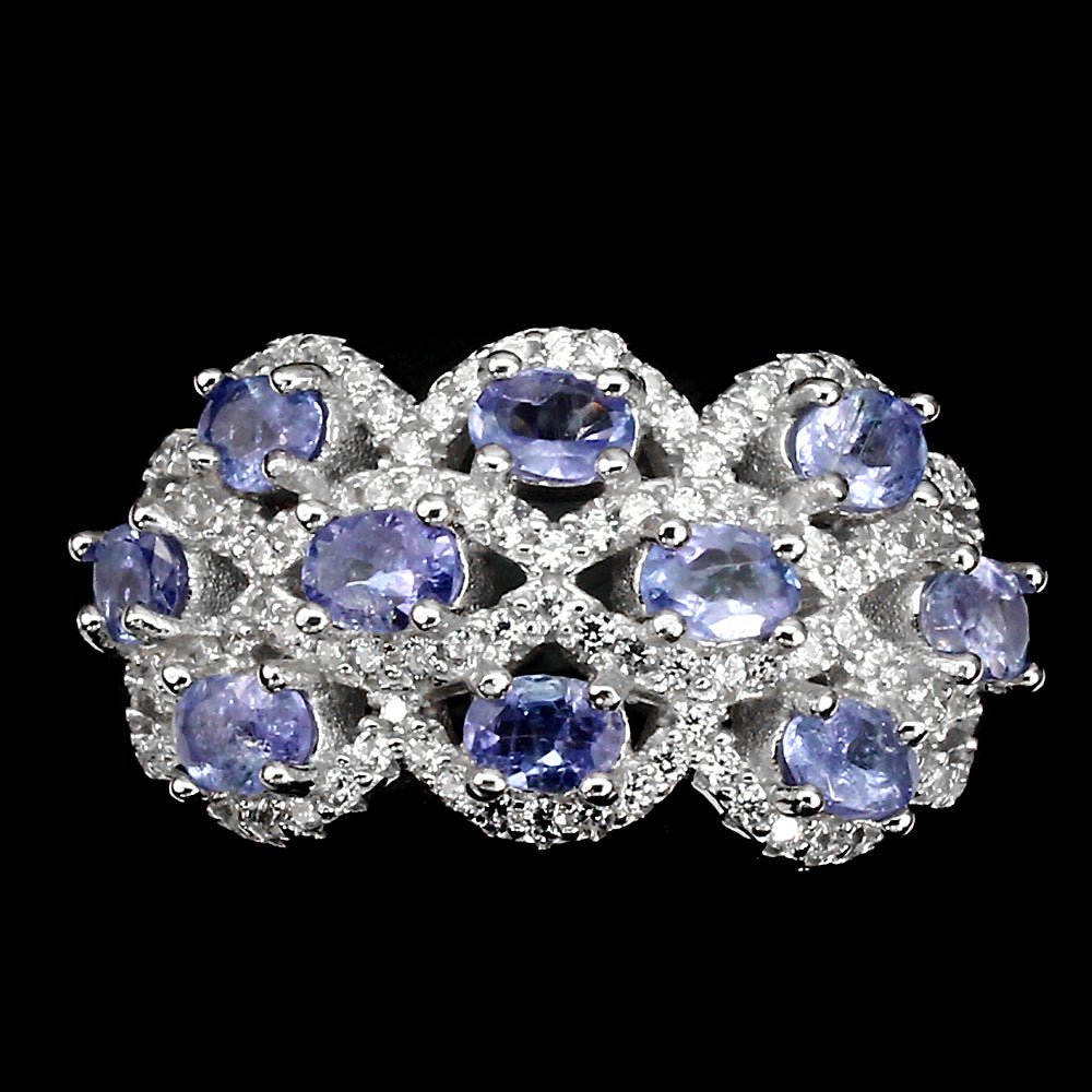 Klassischer Ring mit 10 Tansaniten & weißen Zirkonia gefasst in 925 Sterlingsilber 14 Karat Weißgold vergoldet