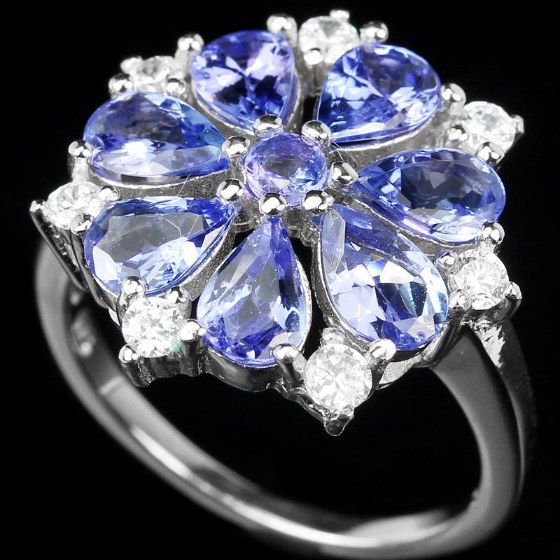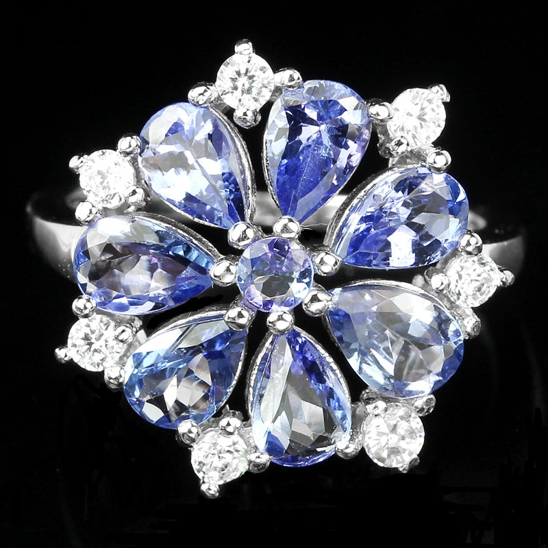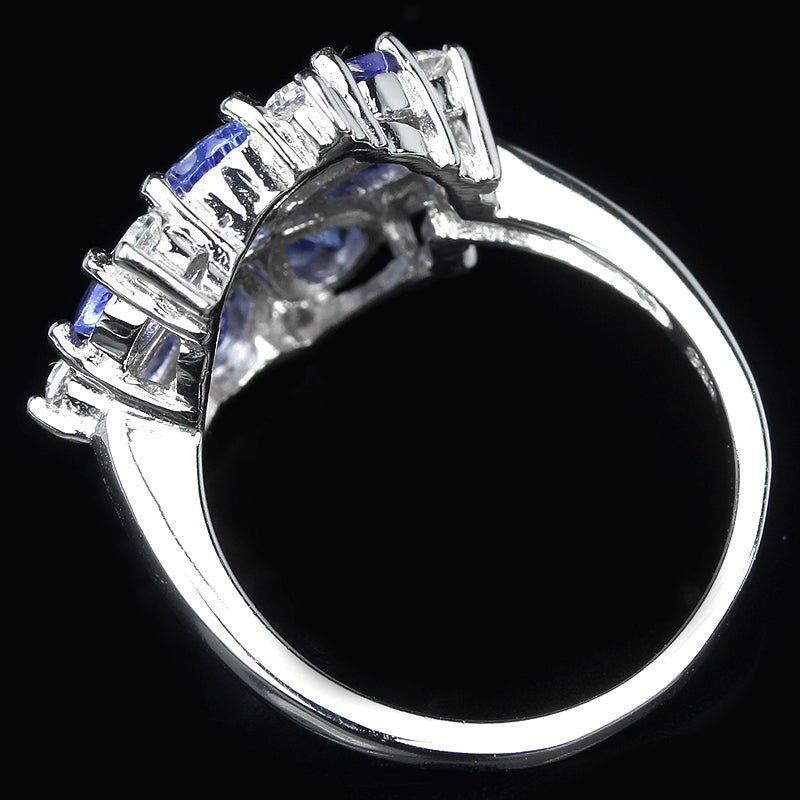 Ring mit Tansaniten & weißen Zirkonia gefasst in 925 Sterlingsilber 14 Karat Weißgold vergoldet