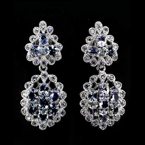 Luxuriöse Ohrringe mit Tansaniten gefasst in 925 Sterlingsilber 14 Karat Weißgold vergoldet