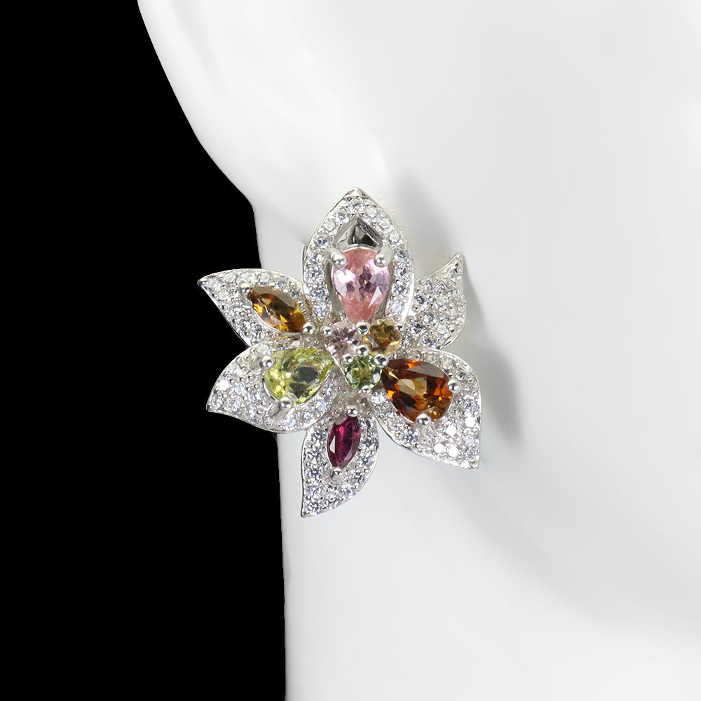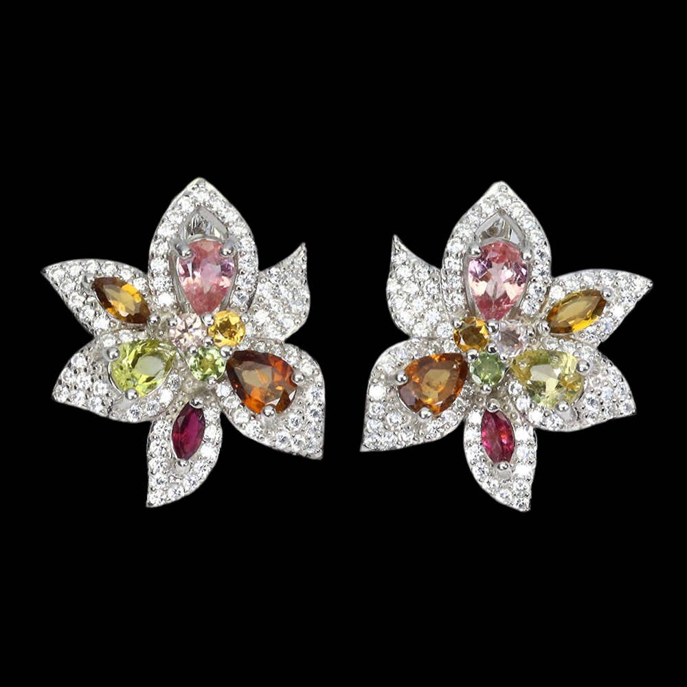 Ohrringe mit Turmalinen in verschiedenen Farben & weißen Zirkonia gefasst in 925 Sterlingsilber 14 Karat Weißgold vergoldet