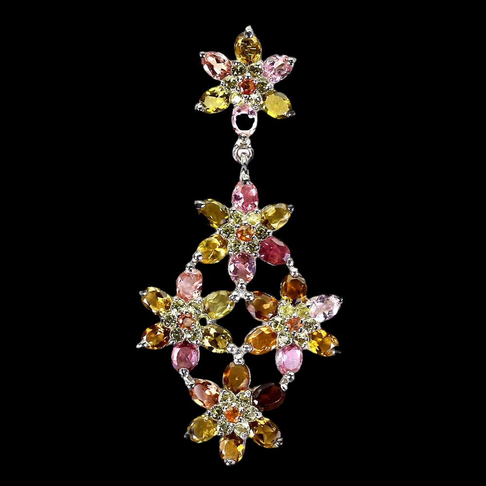 Anhänger mit Turmalinen und Saphiren in verschiedenen Farben gefasst in 925 Sterlingsilber 14 Karat Weißgold vergoldet