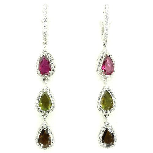 Ohrringe mit großen Turmalinen in rosa grün und braun & weißen Zirkonia gefasst in 925 Sterlingsilber 14 Karat Weißgold vergoldet