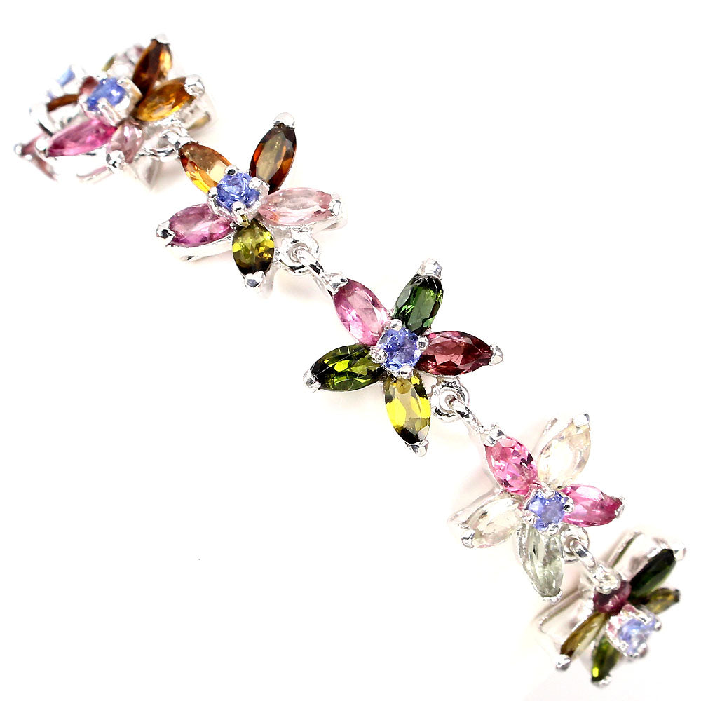 Armband mit Turmalinen in verschiedenen Farben und Tansaniten gefasst in 925 Sterlingsilber 14 Karat Weißgold vergoldet